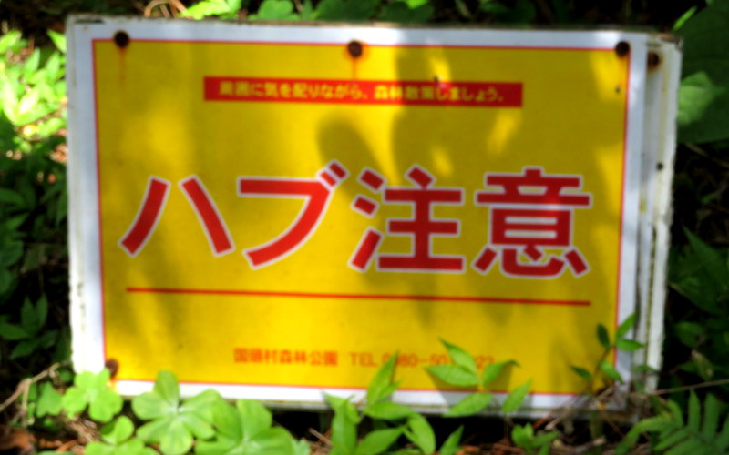 Be careful, especially when out looking for Amami Woodcock or owls at night. In some places, such as along the Kinsakubaru forest track and in Amami Natural Forest, warning signs are posted. In Japanese/katakana, the name of the snake is written ハブ