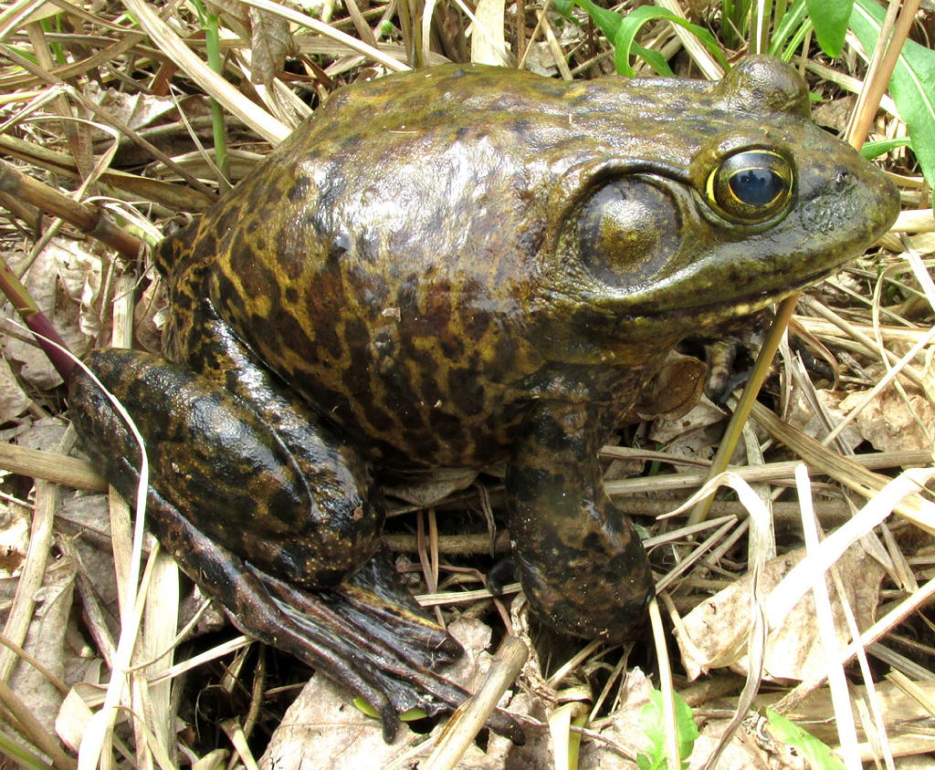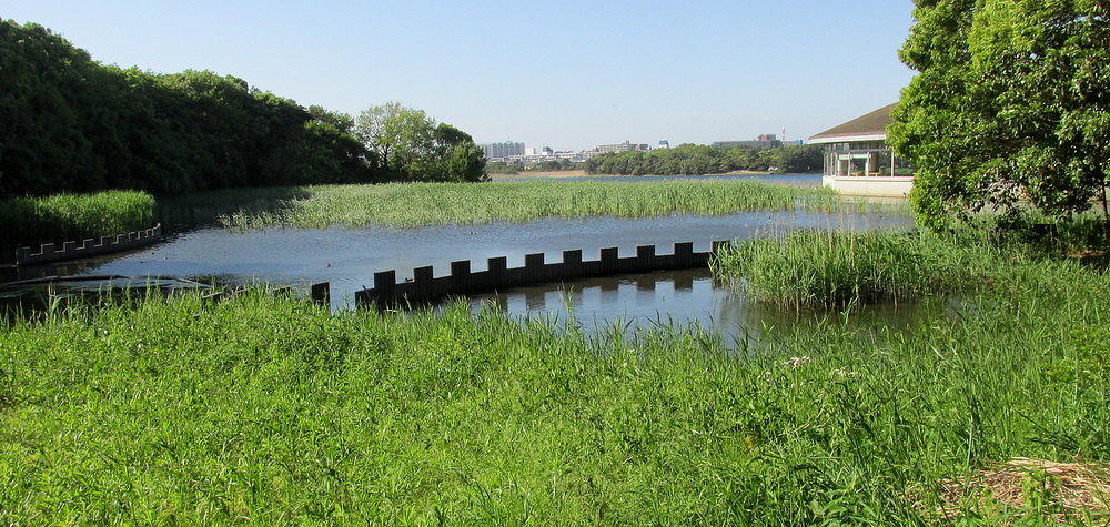 These swampy areas offer perfect cover for American Bullfrog and also Red-eared Slider turtles — both introduced species in Japan. The former can often be heard calling in the spring or summer months – a call not to be confused with the booming of a Eurasian Bittern — and both the frog and the turtle haul themselves out and sun themselves on a warm day.