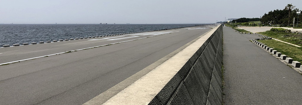 Further along the coast is Kaihin Park in Narashino City. This small park is located right next to Narashino Seaside Cemetery. The habitat consists of a few open grassy areas and some bushes and trees. From the east side of the canal which marks the west end of the park, a walkway and cycle path behind the concrete seawall extends for several kilometres and it is from here that you can look out into the bay and see birds offshore.