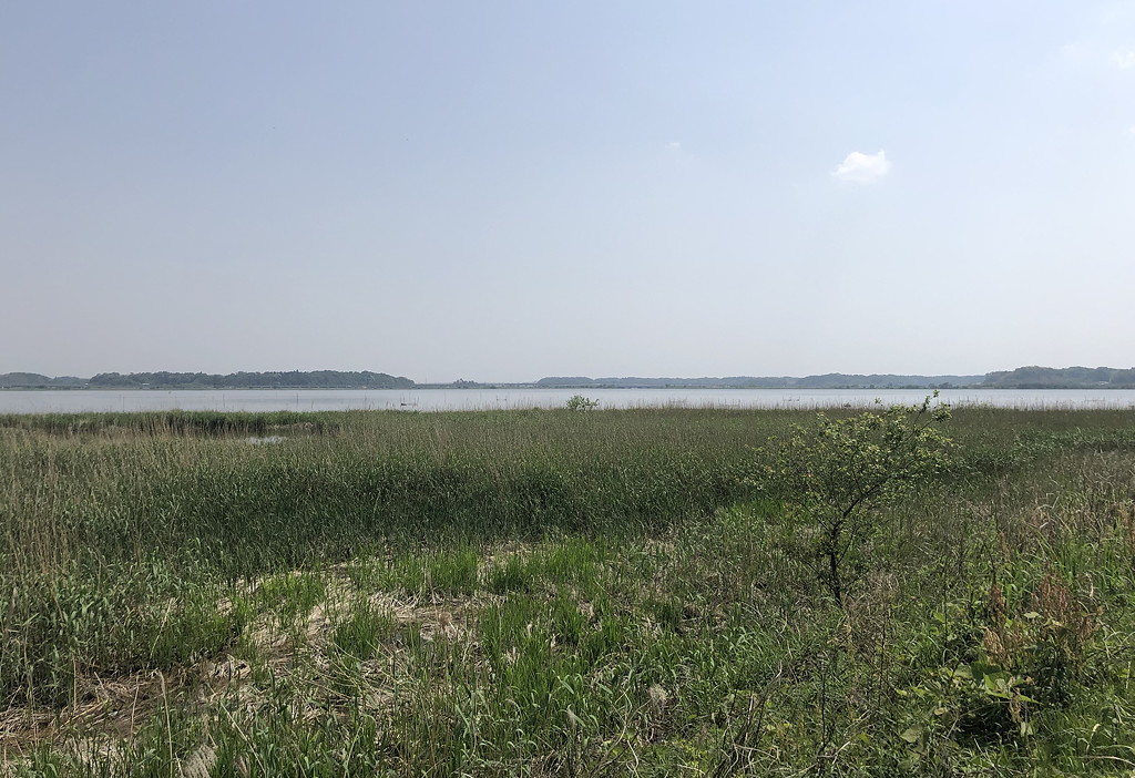 From Abiko Station (Joban Line) walk about 30 minutes to Teganuma Park (手賀沼 公園)and then walk east along the north side of the lake to Tega-ohashi bridge(手賀大橋). From the bridge, continue walking along the cycle/jogging path to Katayama Shinden, at the east end of the lake, before returning. Another route is to walk about 20 minutes south from Tennodai Station to Hachiman Shrine/Konoyama Shinden, and then check the areas on both the west and east side of the small park on the water's edge. From this area, It is a pleasant walk (in nice weather!) right to the east end of the lake, where you can check the rice paddies.