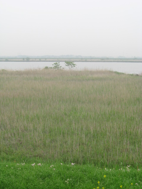 Walk along this road (going downstream, in the direction of Choshi) for a couple of kilometers, until you come to a rest area with a shelter and wooden viewing area. Marsh Grassbird is quite common all along the side of the river, and in April and May the males can be seen making their display flights above the reeds before dropping back down.