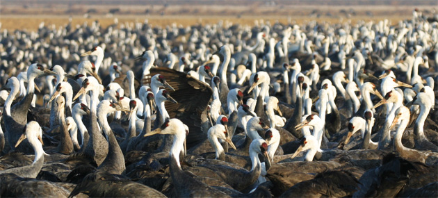 February. An exciting month when Hooded and White-naped Cranes are present in Kagoshima Prefecture, Kyushu, at peak numbers - reaching 13,000 birds in some years - and when Red-crowned Cranes can be seen gathering and dancing at their winter feeding grounds in east Hokkaido. At one of these sites, live fish are put out for the cranes and this scenario regularly attracts up to a dozen White-tailed Sea Eagles.