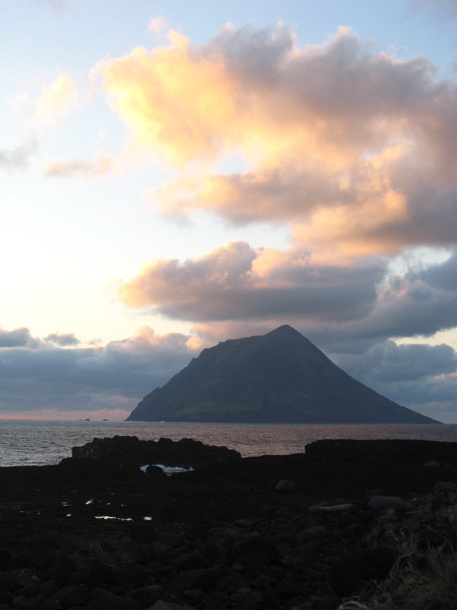 Offshore from the northwest side of Hachijojima is Mujin-to, and soaring triangle-shaped remains of an old volcano. In recent years a small colony of Black-footed Albatrosses has been established there.