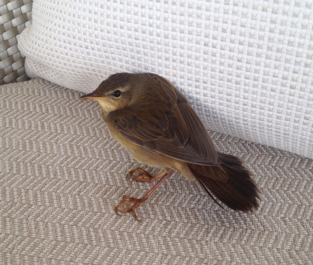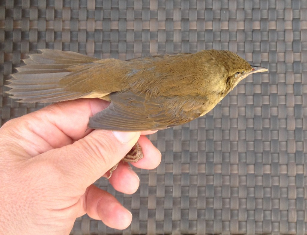 As the creature emerged again on the chair’s far side it appeared mouse-like despite it being a bird. Instead of hopping, it ran for further cover in a crouching pose. It was a Middendorff’s warbler.