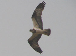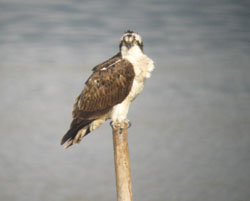 During winter, it is not uncommon to find a half-dozen or more ospreys congregating at river mouths, bays and estuaries in Kyushu. There they loaf lazily on poles, on sea walls or nearby treetops, occasionally making forays for fish. One researcher I know, who studied ospreys wintering in Senegal, found that they only need to spend about 30 minutes a day fishing in winter — a far cry from the busy life of the osprey in summer, when it must commute up to 10 times a day between fishing grounds and nest site and also find time for a snack itself in between!