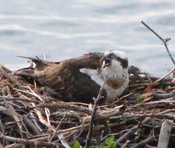 An osprey on its jumbled nest