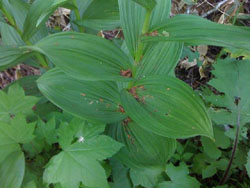 Lush green megaherbs are not confined beneath the canopy of the northern woods. Alongside tracks and trails in more brightly lit areas, lengthening stems with rosettes of broad, dark-green leaves around them at the base are those of the heart-leaved lily (Lilium cordatum). They seem to do well where the ground has been compacted somewhat, and at this time of year they are raising their large creamy flowers into the flightpaths of swallowtail butterflies and bumblebees. In autumn, they produce pods densely filled with winged seeds like potato chips in a tube.