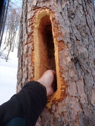 The woodpecker will then lean ever further into the cavity, driving its beak home with tree-shaking blows and sending out a rain of debris that carpets the ground as it searches for yet more prey. When it finally moves on, I find I can sink my extended hand deep into the resulting hole. All this has been excavated in minutes — and it is not even nesting season with chicks to feed.
