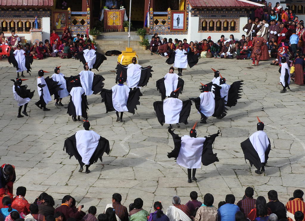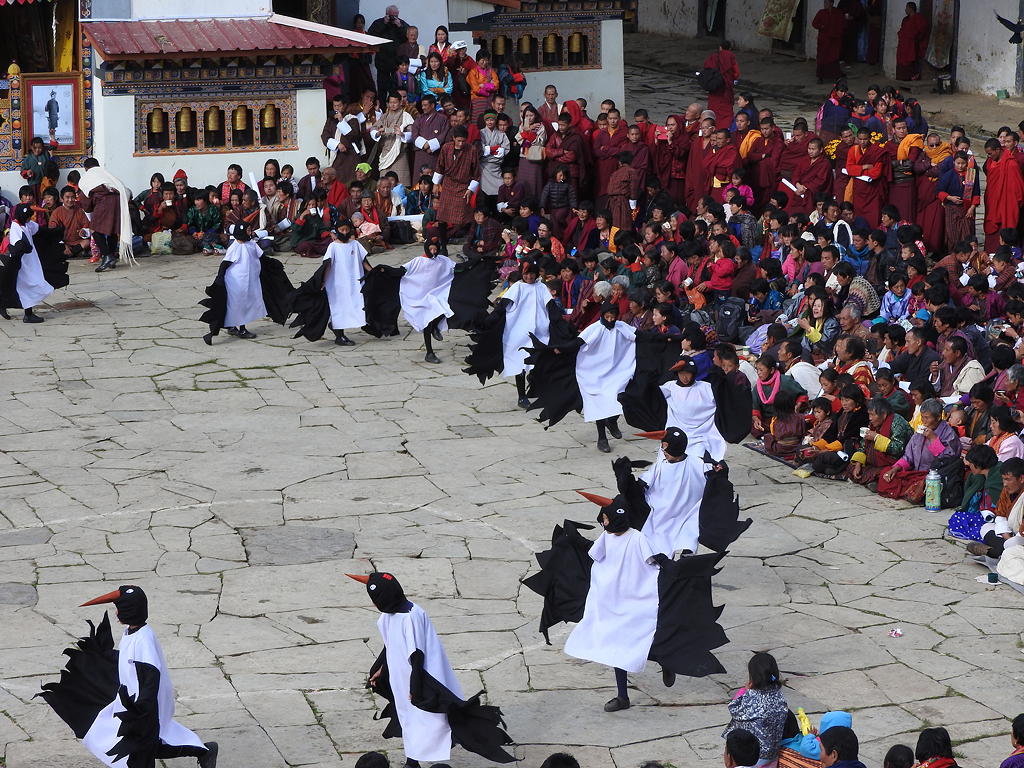 In the 1970s, His Majesty, the Fourth King of Bhutan, Jigme Singye Wangchuck, coined the term Gross National Happiness. His concept was a simple, but powerful one that development should not only be sustainable, but also take a holistic approach towards progress and give equal importance to the non-economic aspects of wellbeing. Now doesn’t that sound civilized! In a country that epitomizes the Gross National Happiness approach to the future, how wonderful that there is a festival to commemorate an iconic bird, which itself represents happiness.