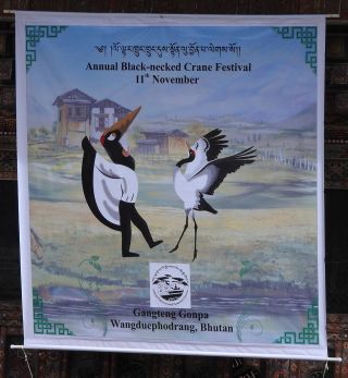 On festival days colourful crowds gather at the local dzong (fortified monastery), to make a daylong event of dancing, eating, socialising, and watching tournaments and performances. In this intensely Buddhist country, the festivals are essentially religious calendar events, but one in particular has taken on special significance and has earned itself an international reputation. I am talking about the impressive Annual Black-necked Crane Festival that is held each November in Gangtey Goempa.