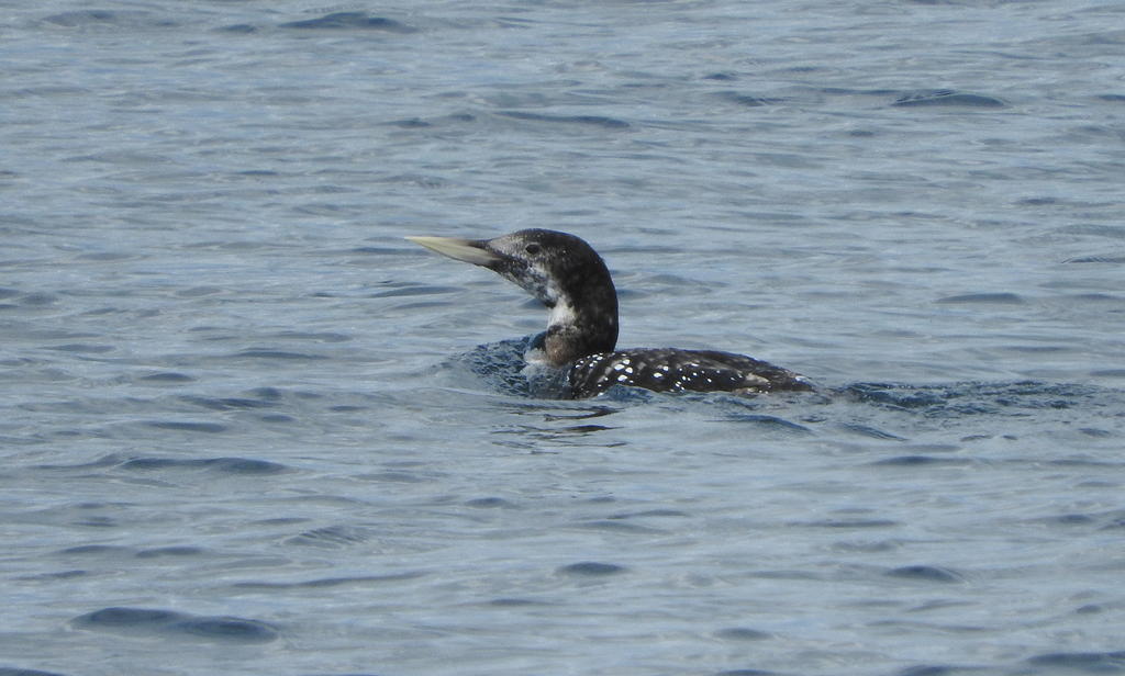 Satiated with our exhilarating dolphin sightings we eventually turn eastwards in search of our main blubbery quarry, but we are soon distracted by a pair of birds loafing on the water, closer inspection reveals them to be something quite unexpected and a rarity at this time of year – a pair of White-billed Divers, otherwise known as Yellow-billed Loons – a species I have only seen a handful of times in Japanese waters. With such an exciting start we are already commenting to each other that the day has been a complete success, whether we see whales or not, but our captain and his spotter have already sighted our quarry off in the distance and off we set in pursuit.