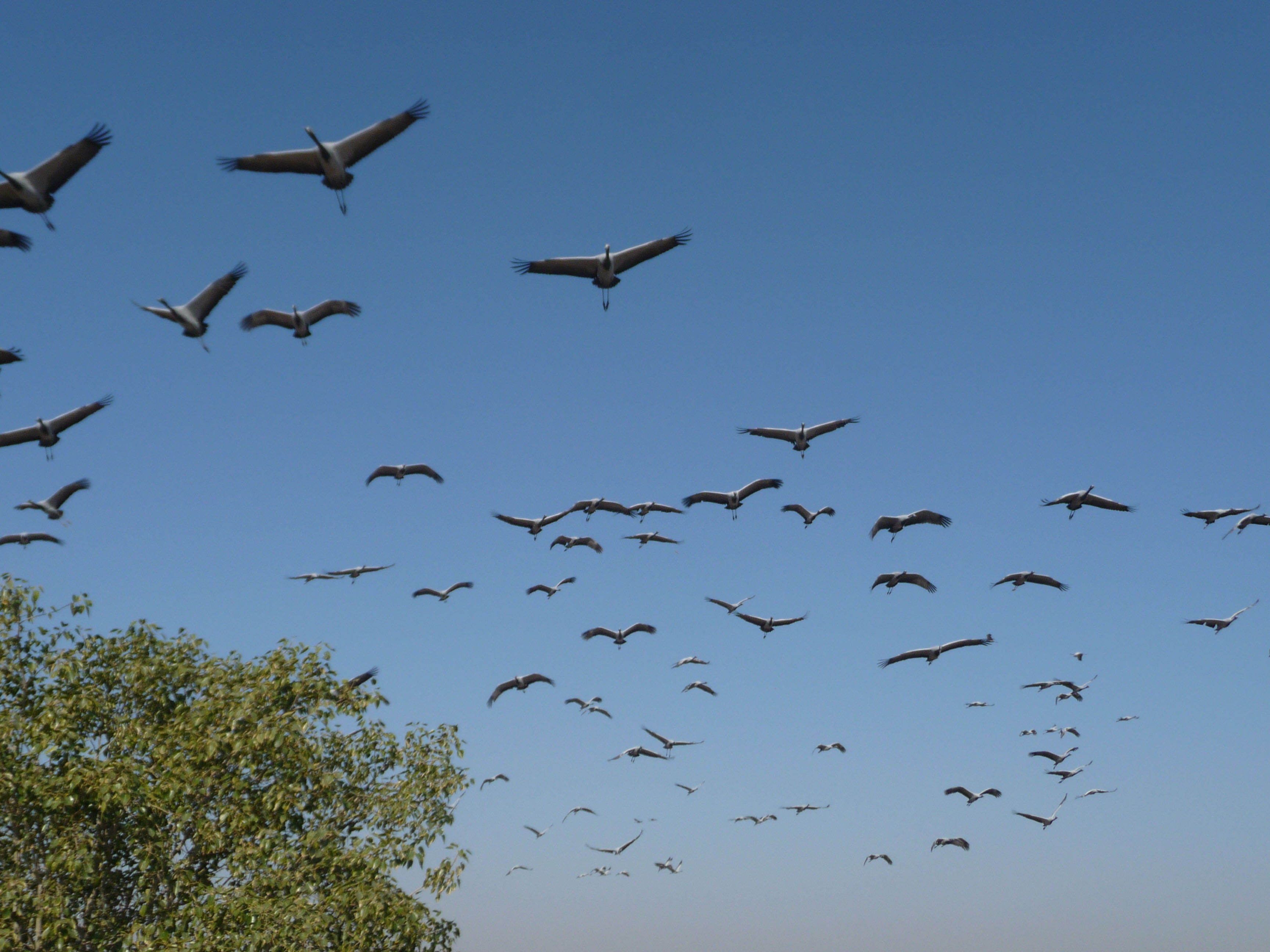 In the long pause between first sight, first light and sunrise, the less patient among us began doubting the arrival of the cranes: “Why don’t they come in?”; “There must be a better ‘restaurant’ in town.”