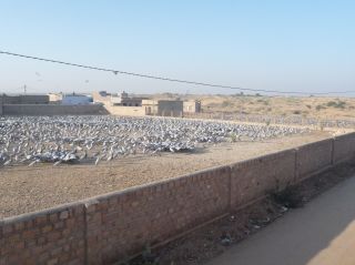 Meals square: The compound at Khichan where villagers put out grain for the cranes.