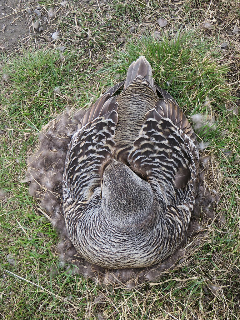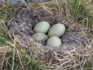 Each female lays a clutch of heavy, olive-green eggs into a nest built on the ground. She lines her nest with grey-brown down that she preens from beneath her belly feathers and when she leaves her nest for food or water, it is this miraculous down that keeps her eggs warm.