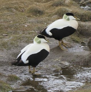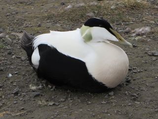 The Common Eider Somateria mollissima is a beautiful bird of the northern temperate and Arctic regions and close relatives have occasionally appeared in northern Japan in winter.