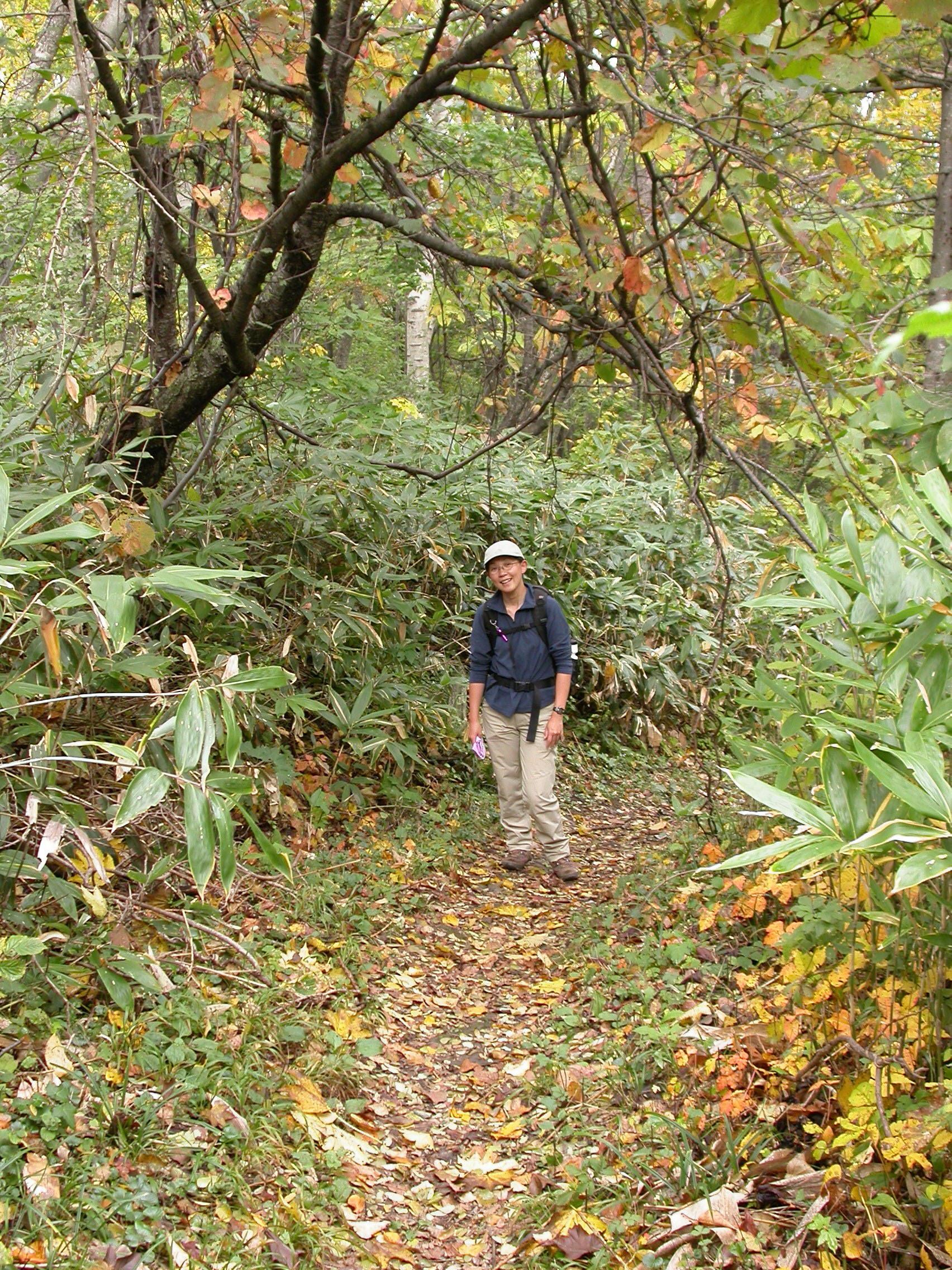By the time I won through to the ridge-top trail I felt exhausted; that 20-meter section through sasa was the most tiring part of the whole day’s hike. In fact, struggling through dense stands of sasa is one of my images of Hell — and that “adventure” on Mount Yoichi-dake brought to mind a long suppressed memory of once having been lost in just such a torment.