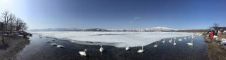 Each year the “angels of winter” wing in and out of Japan. They arrive, clamoring, on the gnarled back of autumn storms, their wings and the first snowflakes flurry together as if they, too, are an integral part of the changing season.They are swans. They linger through the coldest, bone-numbing months of winter; they seem at home along freezing rivers and lakeshores, even in ice-filled bays. Then, as if the effusion of plum blossoms is a blight on their world of winter, they leave before true spring takes its grip on the land. The first migrant swans are already moving northward through these islands, readying to head back to their Russian breeding grounds, though not without taking with them a taste of Japan’s fresh green growth as it emerges from beneath the snow.