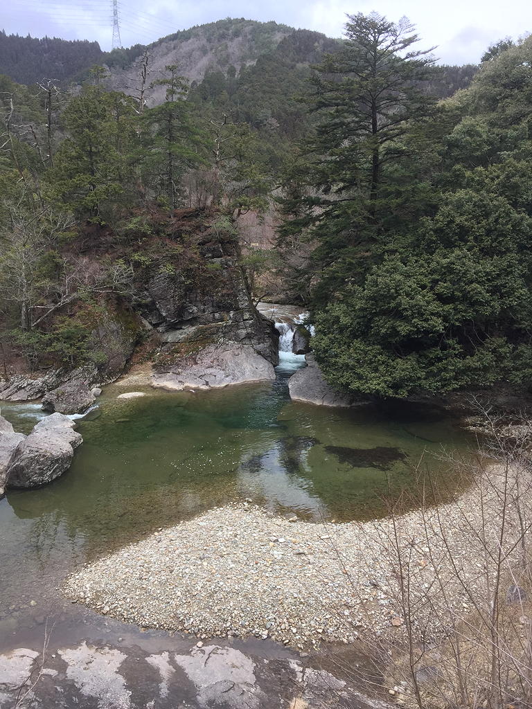 The heavily overcast sky delivered first a light rain then a wet snow that thickened, whitened and eventually coated trees and grass alike. Mercifully the road did not turn any more treacherous than indicated by its many winding curves, despite the falling snow. The weather was a surprise for the end of March in Hyogo Prefecture, as was my strange sense of recognition. I’d been in this valley before!