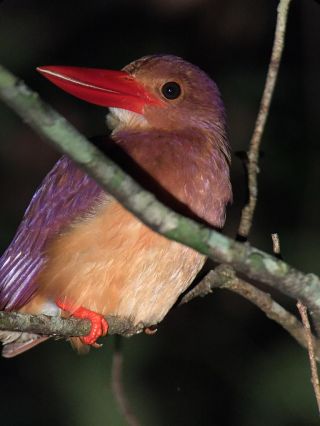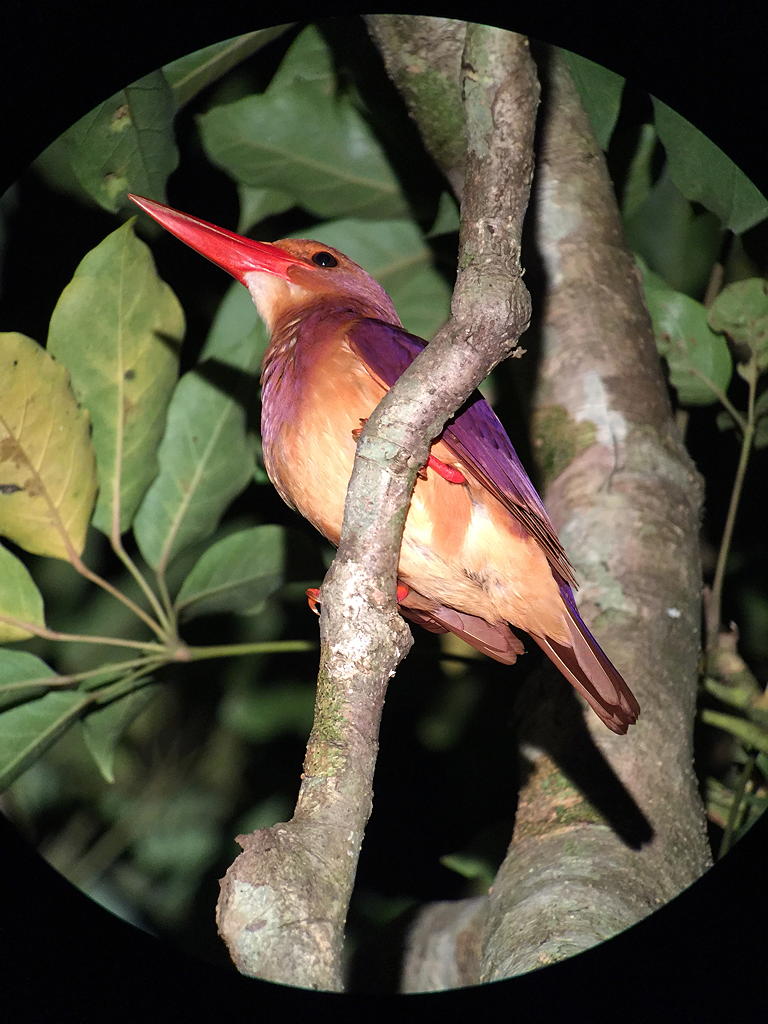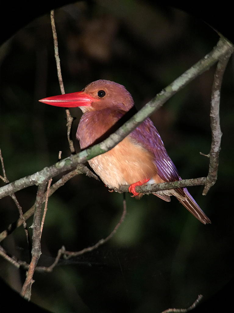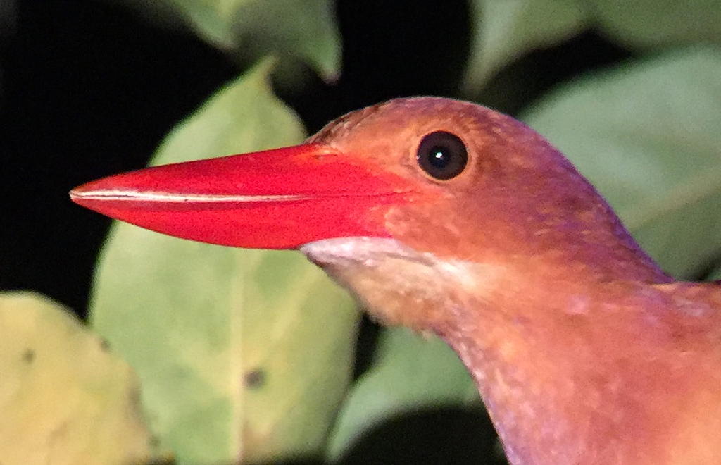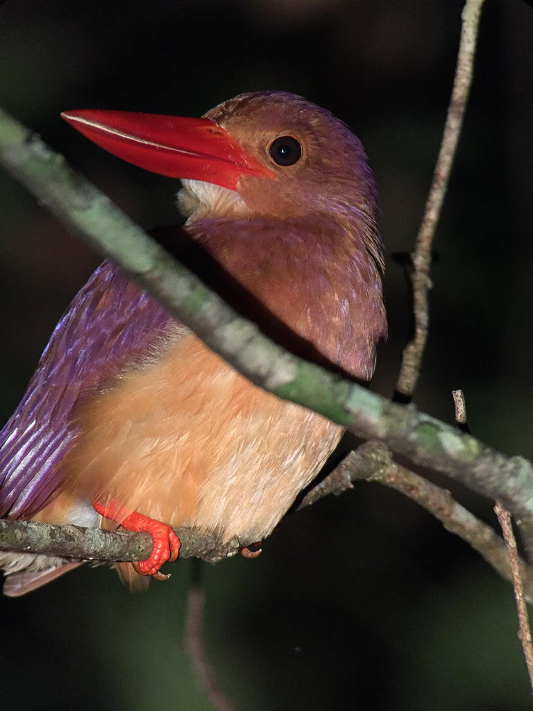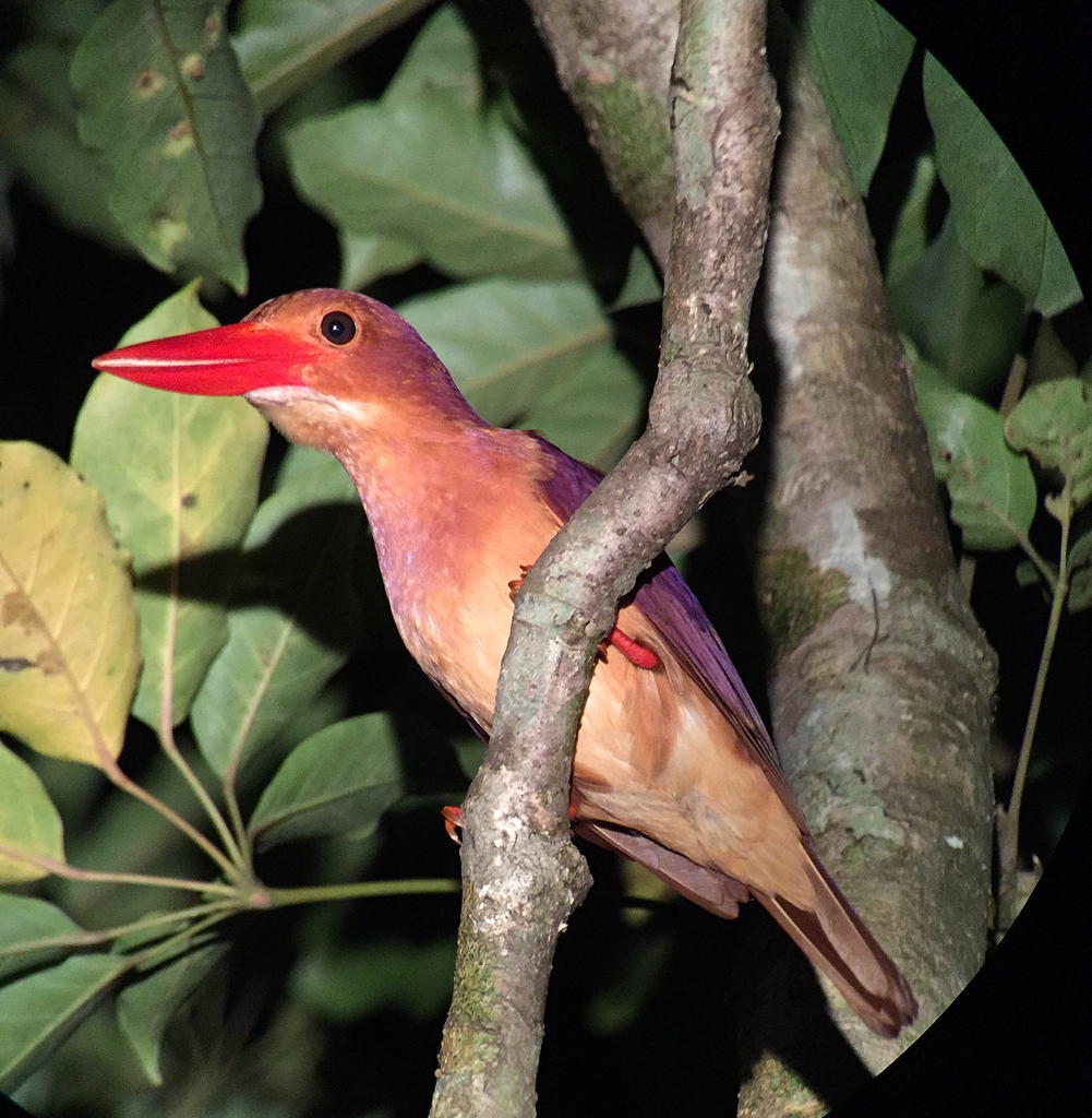Belonging to the genus Halcyon, the Ruddy Kingfisher carries a wonderful story in its name. The modern word Halcyon, is derived from the ancient Greek word halkuon, which referred to a mythical bird that has long been considered to be a kingfisher. The halkuon was believed to nest on the sea. So beloved was the halkuon by the gods, that they calmed the ocean waves whilst it was busy incubating and raising its young, hence today we call such periods of peace and calm “halcyon days.” During the hours of darkness, as it sits peacefully beneath the forest canopy, the Ruddy Kingfisher may be said to enjoy a halcyon night.