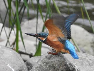 Common Kingfishers are plucky speed demons, and although they only weigh in at around 40g for several weeks each summer they act like crazed pugilists bashing and battering not only against each other as they fight over territory, but also against solid earth. Kingfishers are hole nesters, and the kawasemi digs its nest cavity into the earthen bank of the river. To begin its nest hole it must launch itself at speed against the bank, chipping away at the earth with the combined impacts of its bill, body and feet. Once it has gained purchase on the bank and created an initial hollow or ledge, it can then perch, peck, and scrape. Male and female take turns in this laborious process until they have excavated a tunnel barely wider than their bodies but which slopes slightly upwards reaching almost 90 cm long.
