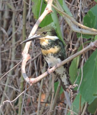 I was sitting slap bang in the midst of kingfisher territory and was enthralled as the hours slipped by with kingfishers dashing back and forth and other birds putting in an occasional appearance. A pair of Grey Wagtail frequented the riverside, a pair of Crested Kingfisher occasionally put in an appearance, chattering loudly from the trees across the water, and just once a White-tailed Eagle dropped by, perching in a tall tree overhanging the stream, briefly surveying the scene before unfurling its great wings and moving on.