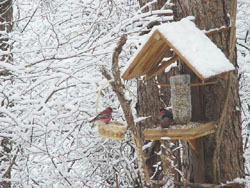 It’s those feeding tables that make it difficult on a snowy winter morning to know whether to stay put or to go for a walk — it’s tempting to stay inside, warm and dry, and simply enjoy the to-ings and fro-ings of the local birdlife. Regulars such as brown-eared bulbuls, great tits and great spotted woodpeckers are no surprise at the feeders, but flocks of Asian rosyfinches, and more amazingly beautiful Pallas’s rosefinches, are more unusual sights.