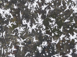 In January, on the peaks of Kirishima in Kyushu, I’d witnessed a few hours’ snowfall where I’d only ever before experienced winter frosts. Generally, though, the warming temperatures in Kyushu made me comfortable out of doors in my shirt-sleeves, but the white covering on the flowering trees brought Hokkaido to mind and sent winter shivers down my spine.