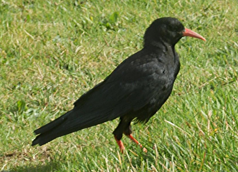 Entirely lacking from Japan, though present in Ireland, is a unique and unusual member of the crow tribe – the Red-billed Chough. It is a bird equally at home on the steppes of Central Asia and it may be found also in some mountainous areas of Europe, but I found Ireland's most unusual corvid at the spectacular cliffs of Moher against a backdrop of wonderfully dramatic and breath-taking coastal scenery. This unusual crow not only has a deep red bill but it also has conspicuously bright red legs. The chough's bill is unusual among crows in that it is not only very sharply pointed but it is also distinctly down-curved, both aspects are adaptations to its unique foraging habitat. This is a bird of coastal areas (and mountains and steppes) where its preferred habitat of short, dense turf can be found. In Ireland it can be found especially along cliff tops where salt spray and strong winds limit plant growth to the very types among which the chough likes to forage. There it probes deeply into turf and soil for its invertebrate prey. Between times it is aerobatic and vocal, flying in small flocks riding strong updrafts off the fierce faces of the cliffs on broad-tipped black wings like a fearless base jumper with a wing suit. The bird’s call, often repeated, is a distinctive, resounding “chow” that gives this bird its name.