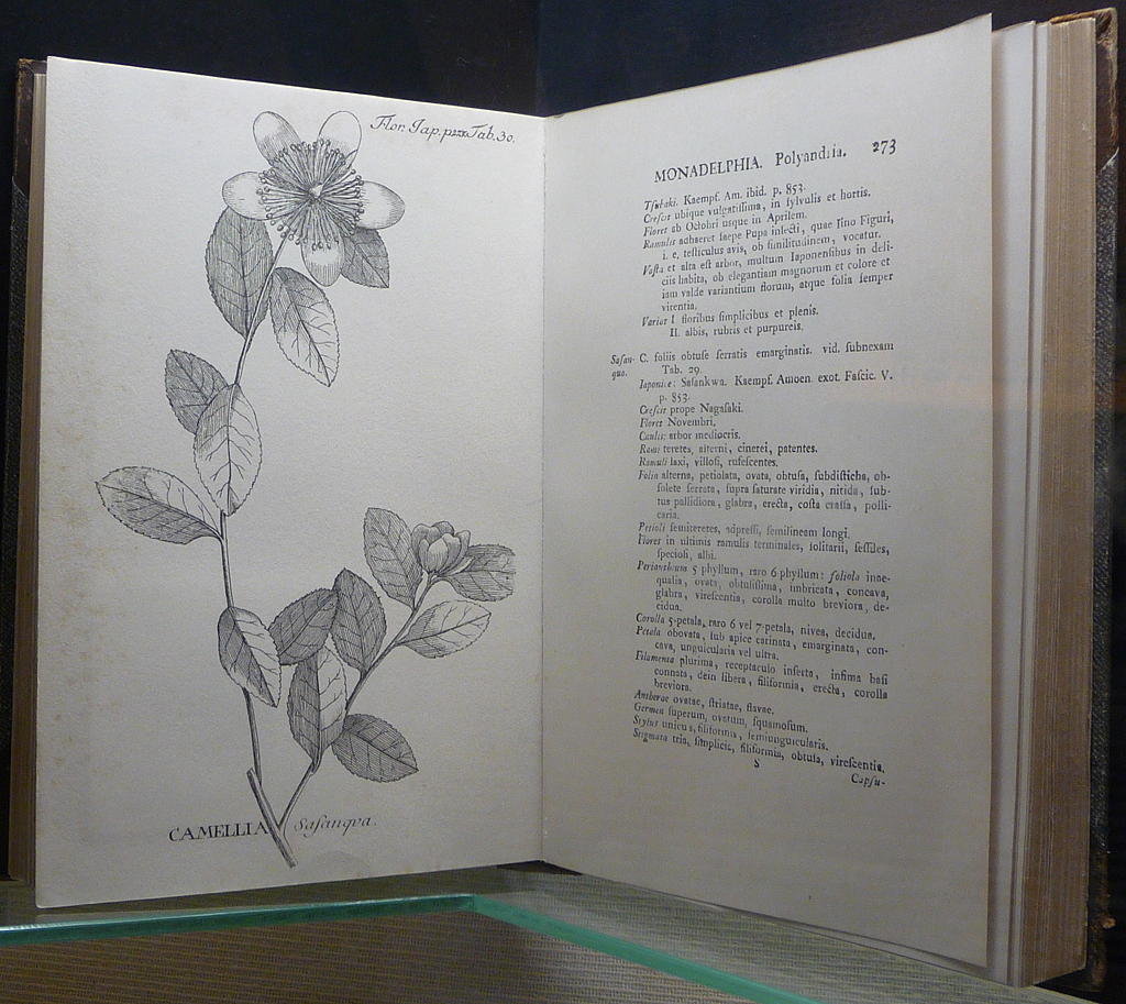Thunberg was extraordinarily fortunate to have been allowed to travel from Nagasaki to Edo (Tokyo) in 1776, and that journey overland allowed him to collect and preserve numerous plant specimens. His studies and his collections allowed him to undertake the first description of the Japanese flora, which was ultimately published in 1784, after his return to Sweden, as “Flora Japonica”. His meandering return journey from Japan, from where he set out in November 1776, took him three years. On his way back to Sweden he visited London and met with contemporary botanist Sir Joseph Banks, himself commemorated in innumerable plant names, in particular in the generic name Banksiafor the many species commonly known as Australian Honeysuckles. In London, Thunberg was able to examine the collection of his predecessor at Dejima, Engelbert Kaempfer, and we may only imagine how thrilling an experience that must have been for him.