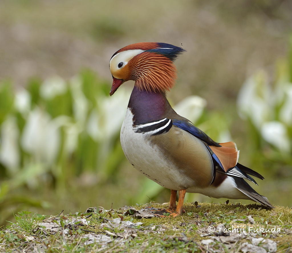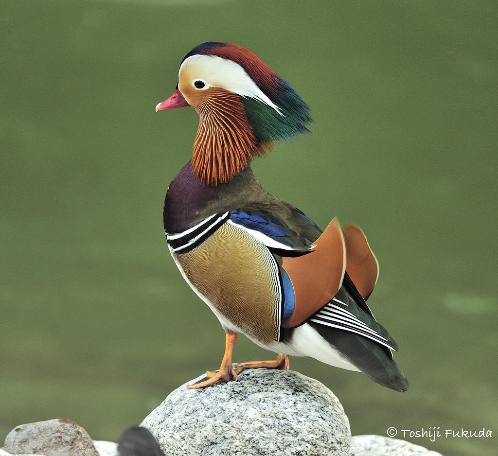 The name “Mandarin” for this delightful duck is perhaps derived from the fact that its distinctive orange ruff and orange sail-like wing feathers brought to mind the orange robes of the high officials in the former imperial Chinese civil service.