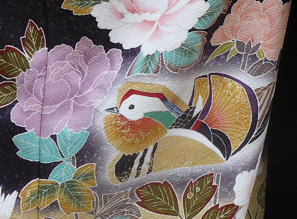 The long entrenched belief, that male and female Oshidori, consort together throughout the year, much as do cranes, has led to the Mandarin having a powerful symbolical role in both the art and literature of Japan. The Mandarin is revered here as a symbol of conjugal love and affection, of marital bliss and fidelity, and paired porcelain Mandarin are a common wedding gift, while the Mandarin image appears in myriad including kimono.