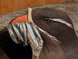 This particular utou colony, of as many as 600,000 birds, is reckoned to be the largest in the world. To wax taxonomical for a moment, I must say that I prefer to call them puffins, although most reference books give them their widely accepted English name of Rhinoceros Auklet and their scientific name of Cerorhinca monocerata. However, despite their traditional name, these birds found on the coastlines and open seas of the North Pacific recall the three other puffins (Atlantic, Horned and Tufted) in so many ways that I actually like the old alternate name of Horn-billed Puffin.