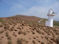 Puffins are burrow nesters, and utou are no exception. The southern cape and the southern half of the western side of Teuri-jima Island provide stunning scenery to the human eye, but to a burrow-nesting seabird they offer the important additional ingredients of thick vegetation and deep soil. Here and there, as we listened on that foggy night, we could hear a rapid scrabbling sound like dozens of crazy carpenters armed with sandpaper attacking some rough wood. Occasionally in our torch beams we were able to spy the activity that was creating the noise. Plumes of fine dry soil were shooting skyward in irregular bursts and gusts, like miniature volcanoes erupting but belching bursts of sand instead of steam or ash.