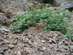 The burrows of Daurian pika were everywhere along the Yol Valley, and these relatives of Hokkaido’s naki usagi were more numerous and more confiding than pika I have seen anywhere else; they were already harvesting grasses, carrying great mouthfuls back to their burrows in readiness for the winter.