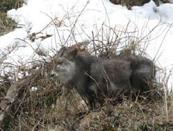 I had heard, though, that the Shimokita Peninsula was the northernmost part of the range of two endemic Japanese mammals — the macaque and the serow, a kind of goat-antelope — and that knowledge really intrigued me. After five continuous days of counting and studying swans in Ominato Bay, tedium was beginning to affect me and I decided a change was in order.