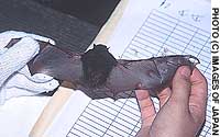 Surprisingly, little is known about bats in Japan, and it seems that no one has previously investigated those inhabiting the large lowland Nopporo Forest on the outskirts of Sapporo. In fact only one bat specimen has ever been reported from there, and that was of a common species known locally as kotengu-komori. These insectivorous creatures are hibernators, and the forest no doubt offers them plenty of cavities beneath bark, in rotted trunks and branches, and in old woodpecker nesting holes where they can shelter during daytime and then survive the winter.