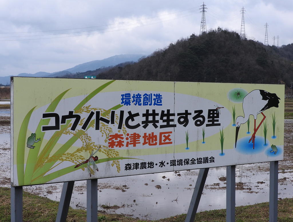 Toyooka City, the Hyogo prefectural government, and the Japan Agricultural Cooperative (JA) have combined forces and since 2003 they have jointly encouraged local farmers to adopt stork-friendly farming methods in order to support the released storks with that necessary habitat. This is the restoration arm of the overall plan to bring back storks to the prefecture and to Japan. The aims of this project have included using minimal agricultural chemicals, such as pesticides, and increasing the diversity and populations of organisms inhabiting the rice fields through field and irrigation management. The scheme requires that farmers: reduce their pesticide use by at least 75 per cent, preferably entirely; use no fertilizers; soak rice seeds in hot water to sterilize them against rice-borne diseases; flood their rice fields and retain water in the rice fields for longer periods so as to allow various species of frogs and dragonflies sufficient time to develop from the egg stage to the adult stage; flood rice fields in wintertime or for at least one month prior to rice planting in order to encourage the sludge worms that help inhibit weed growth.