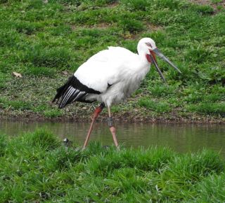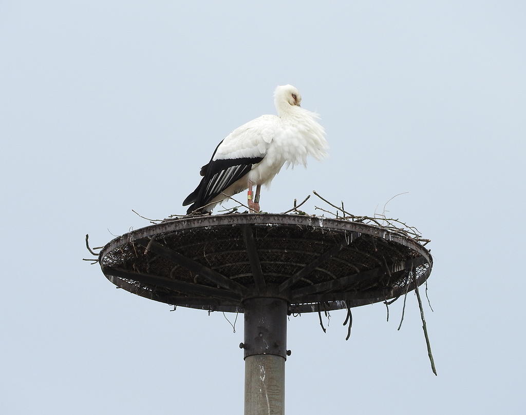 Tracking storks on the ground is not easy. Despite their size they can quickly disappear into a deep ditch or stream, but there are eyes in the sky. Many of the released individuals carry numbered leg bands, plus a combination of up to four coloured bands allowing observers to identify them even at a distance. Once they are out of sight to binoculars and telescope there is only one thing that gives away their location and that is the solar powered backpack transmitter that sends out a signal that can be picked up by satellite. We may not know where all of our Siberian Rubythroats are disappearing, but thanks to advanced technology we can track individual storks and find out exactly where they go, how long they stay there and even with whom they meet up along the way. The backpack transmitter being flat is easily lost among the dense plumage of the stork’s back, so that the only tell tale sign is the flexible antenna that protrudes above the feathers. Even that can be hard to spot.