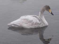 Beyond, on the open lake, whooper swans all facing into the wind “whooped” softly as they kept in contact with each other. Were they complaining about the conditions?