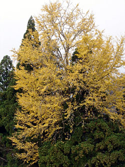 A little over a month ago, in the early days of December, I encountered a wave of color in the mountains of central Honshu that I miss in Hokkaido: the delightful, dreamy gold of ginkgo (icho) leaves. By now, that particularly beautiful wave must be reaching its southern limits, perhaps even petering out toward the southwestern region of Honshu.