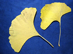 The leave of the ginkgo is unusual in that each blade has multiple midribs fanning out rather than a single central one.