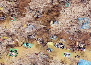Rites of spring: Cherry-blossom parties like these in Kanto are held in late March or early April, at which time the petals have