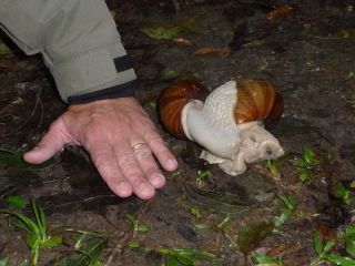 These curious creatures range in size from ones so small they can slither through the eye of a needle, to some so large that just one would more than cover your hand. The largest of the enormous, carnivorous Powelliphanta snails of New Zealand span 9 cm and weigh up to 90 grams. However, the grand champion of the terrestrial snail world is the African Giant Snail of Ghana, whose shell can grow to 18 cm in length.