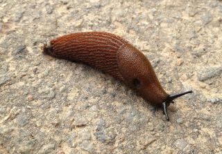 Hungry sole: A brown slug, which eats — like snails — through a mouth in its foot.