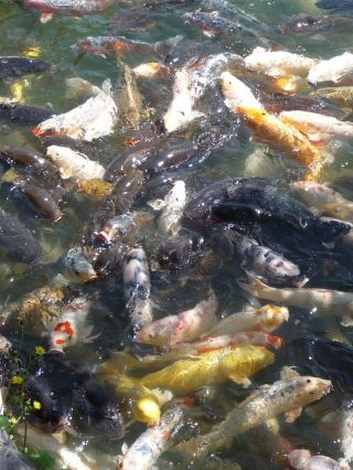 The bright colors of nishikigoi render them distinctive even at a distance, though it is rare and unusual indeed to see one at long range! However, once while I was in Himeji, I looked up and saw an Osprey flying overhead carrying its catch.