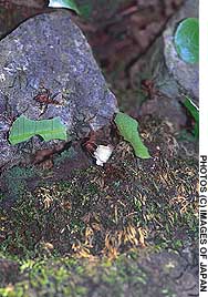 These are the cultivators of their tribe, cutting leaf sections and carrying them home to farm edible fungi on beds of leaf compost.