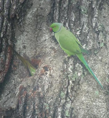 The law of cavity: Rose-ringed parakeets are spreading in Tokyo and may one day nest in the gardens.