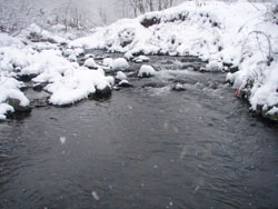 When I woke again it was morning, and the owls had retreated, spiritlike, back into the forest. There was yet more snow, and though it was tempting to remain in the cocoon of my warm futon, I needed fresh air. I also wanted to confirm whether the macabre creatures I remembered seeing in the river the evening before were really there, or just part of my febrile imaginings. So I stumbled down to the stream just outside, where I had spent several hours the previous evening in silent contemplation of the annual miracle of death and rebirth.