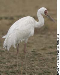 This stately white bird, though easy to spot, seemed unwilling to accept a back-row position. As I approached its feeding area, it took wing with a small group of other cranes, flew closer still, and even after landing proceeded to walk gracefully in my direction. They were seemingly as desperate to be photographed as any catwalk model (though how many of them sport a red face and yellow eyes!) Responding to signals too subtle for us to recognize, the Siberian crane then took its leave northward a few days later, just before the end of February. It can only be hoped thatsomewhere in the steppes of Asia it may reunite with its brethren.