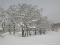 Birch trees in a beautiful, snow-blanketed landscape at Niseko in Hokkaido